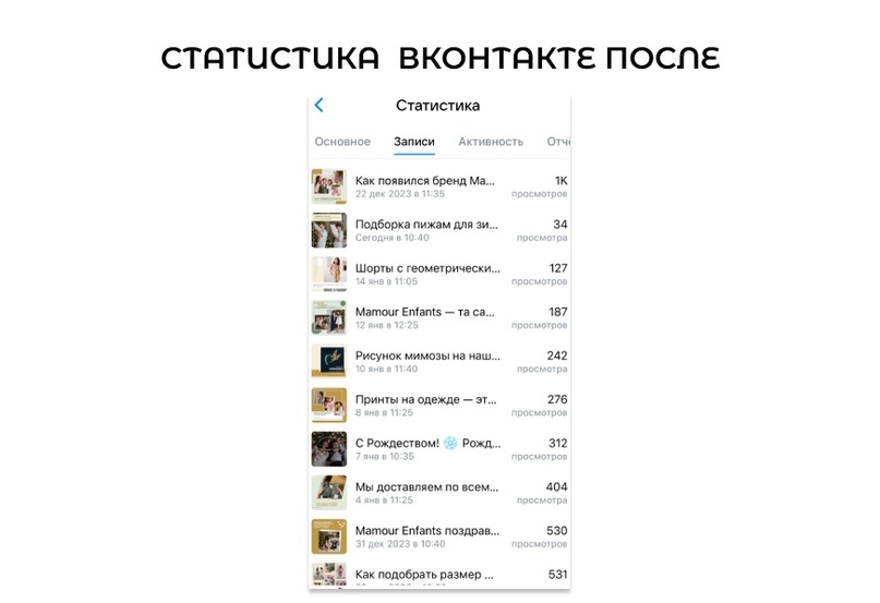 До сотрудничества с нами во ВКонтакте были такие показатели:
